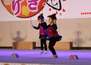日頃みんなであそんでいる縄跳びと、カラーガードの演技も一緒に発表しました。