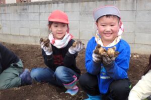 「せんせい、ジャガイモないよ~」「まわりを少し掘ってみて~」