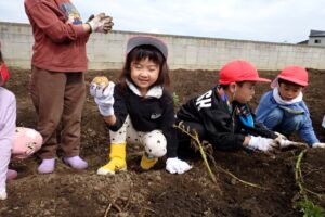 「せんせい、ジャガイモないよ~」「まわりを少し掘ってみて~」