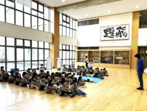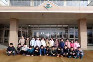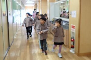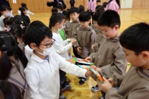 12月9日㈫ 年長児もも組さんが、小学校体験にみずきこども園のもも組さんと一緒に参加するため、常盤小学校を訪問しました。