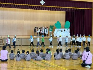 一年生と一緒に交流会を行い、「大きなかぶ」の劇を観たり、みなさんが大好きなジャンケン列車のゲームも一緒に楽しみました。