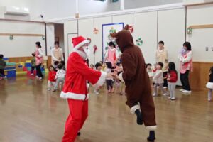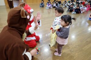 24日(水)クリスマスイブの日、サンタさんがトナカイを伴って ときわこども園にやってきました。