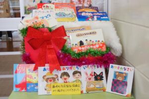 なんとサンタさんは、たくさんの絵本をプレゼントしに来てくれたのでした。さらにサンタさんはトナカイさんと一緒に絵本の読み聞かせをしてくれました。