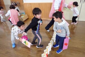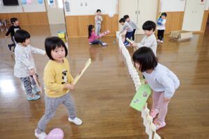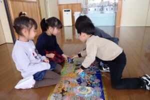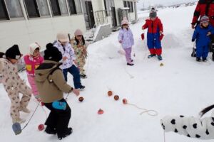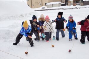 正月子ども会は、知恵や発育を助け子どもの健やかな成長を願って、当園でも永く続けています。しばらくは、お正月あそびを楽しみ昔からの伝統を引き継いでくれることを願っています。
