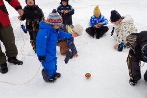 「ずーぐり回しの競争♪イチ・二・サン!」の掛け声で一斉に回します。誰が長く回っているのか勝負です。回し方も様になってきましたね。