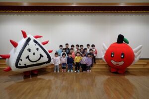 当日、藤崎町のマスコットキャラクター「ふじ丸くん」と「ジャン坊くん」も登場し一緒に記念撮影をしました。