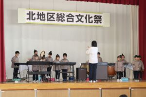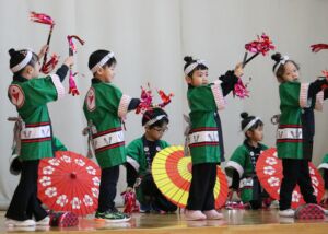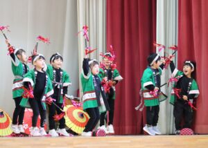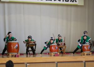 つくし第一こども園の年長組さんと年中組さんが地域の文化祭に参加し、和太鼓演奏やおゆうぎを発表して大いに文化祭を盛り上げました。