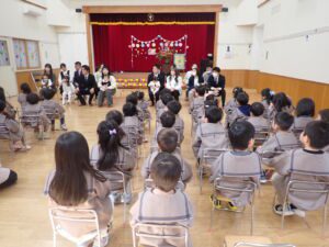 4月1日 黒石市にある、当こども園でも入園式を行って新しいお友だちを迎えました。昨年度の途中入園の園児も一緒に入園式に参加しにぎやかな入園式となりました。