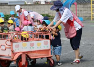 これから、黒石ねぷた祭り、黒石よされ祭りと当市でもお祭りが続きます。つくし第二こども園のお祭りは、子ども達だけの小さなお祭りですが、一足早くおまつりの雰囲気を味わってくれたかなと思います。