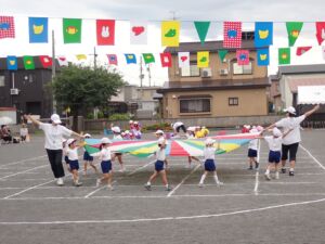 曇りのち時々雨という天候でしたが、こども園の園庭で全プログラムを行うことができました。