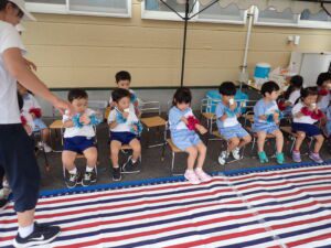 今年は暑い日が続いたので、水遊びの前にゆうぎ室や園庭で少しずつ練習をしましたね