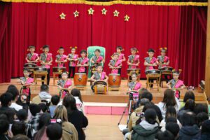 和太鼓やおゆうぎ、歌や運動表現、器楽合奏などの練習の成果を遺憾なく発揮してその成長ぶりを見せてくれました。