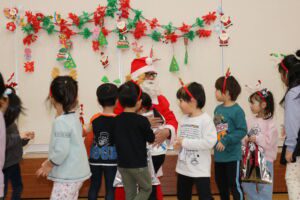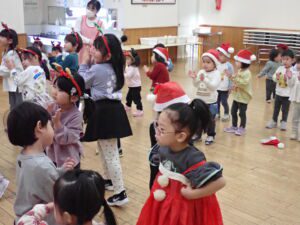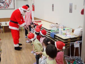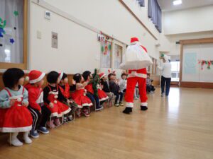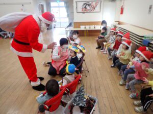 12月19日 サンタさんが、ひと足早くつくし第二こども園にあそびにきてくれました。